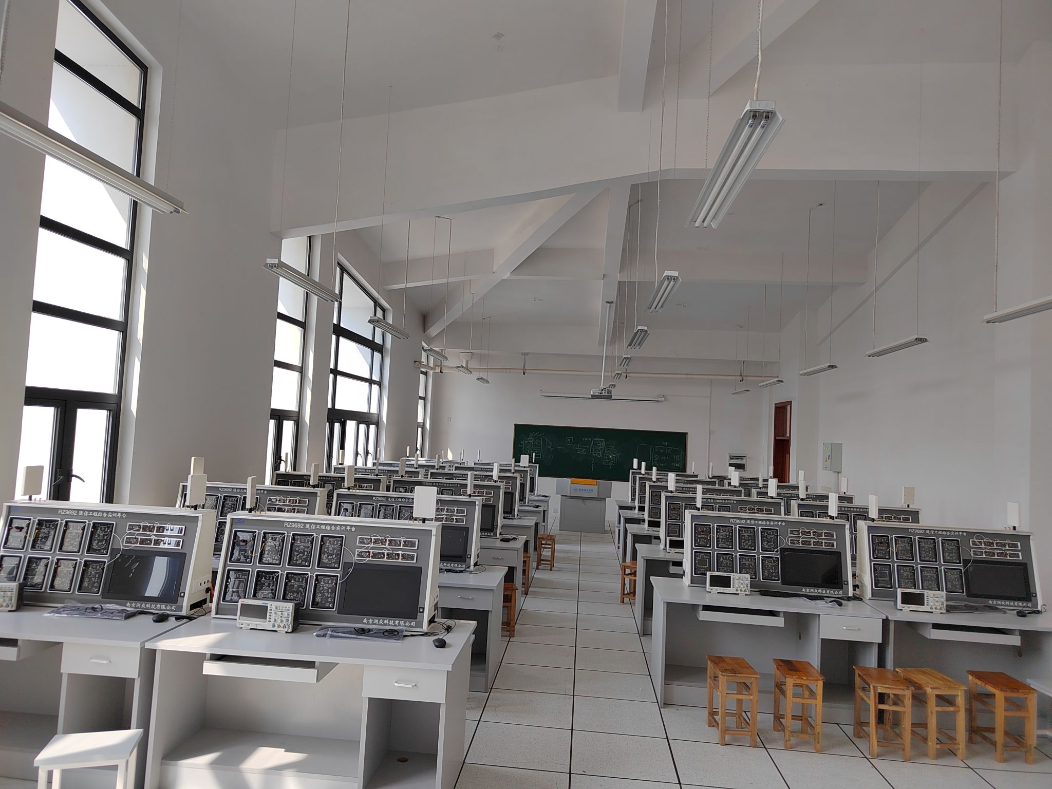 实验室面积约150m2,实验仪器主要有实训(实验)设备25台,另配有能满足通信工程、电子信息工程等专业完成如下实训(实验):