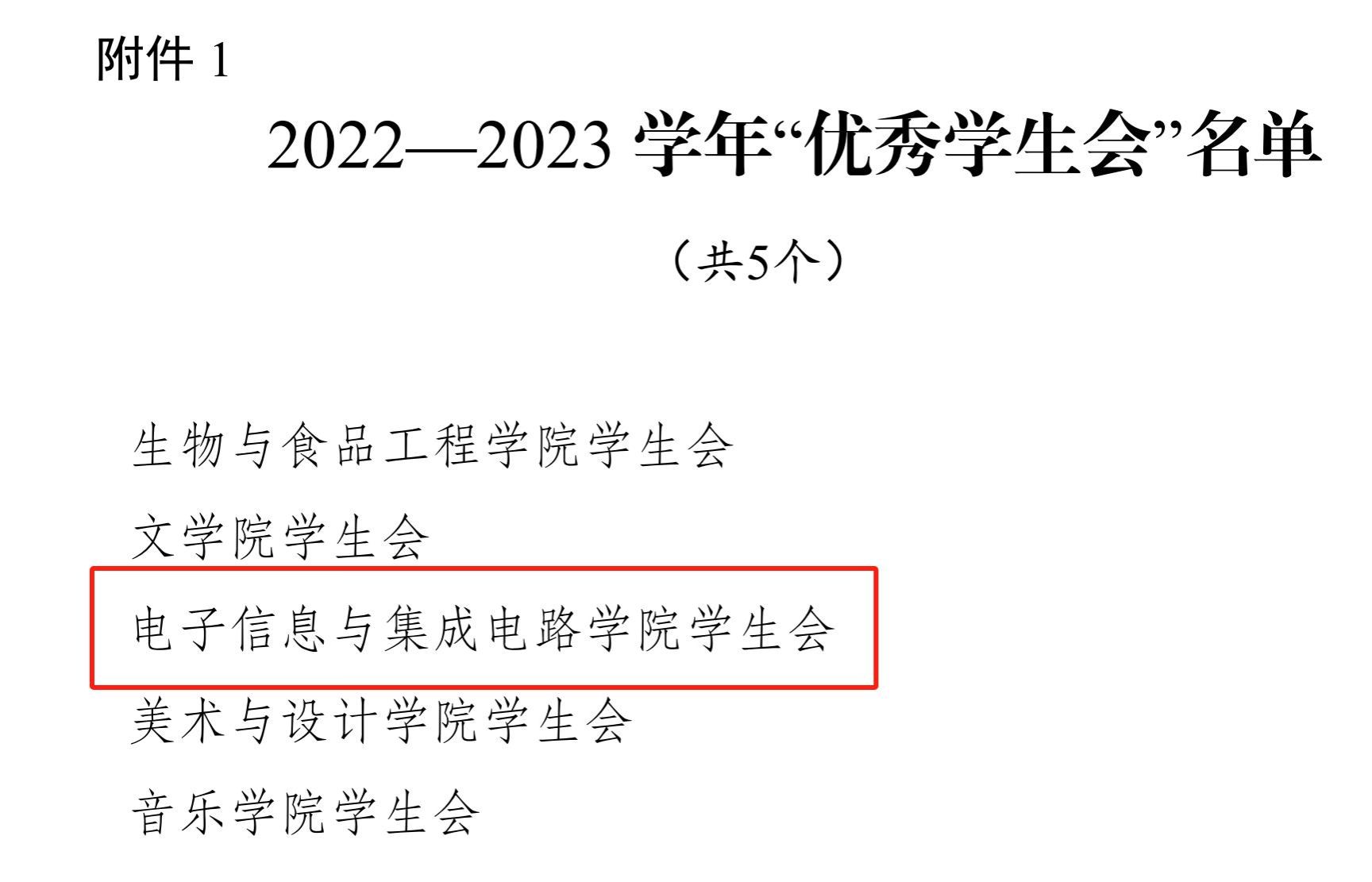 本网讯 近日,学校团委作出表彰决定,电子信息与集成学院学生会荣获2022-2023学年“优秀学生会”称号。