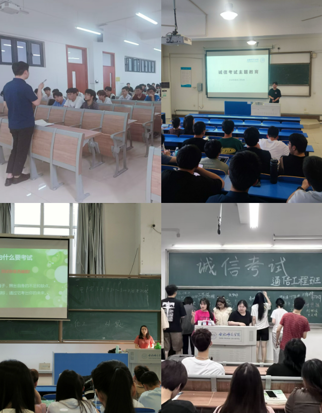 本网讯 为严肃考风考纪,加强青年大学生诚信教育,引导学生做社会主义核心价值观的坚定信仰者、积极传播者和模范践行者。6月12日——6月16日,Beat365中文官方网站在各年级各班级组织开展了“自信迎考 诚信应考”诚信考试主题班会。