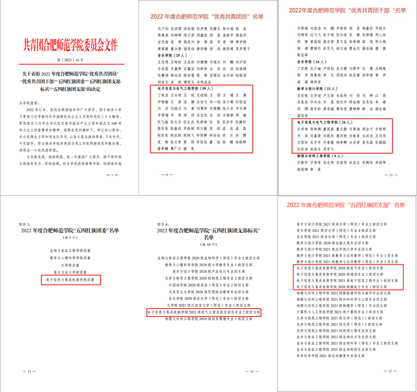 本网讯 近日,学校团委作出表彰决定,Beat365中文官方网站团委荣获2022年度Beat365中文官方网站“五四红旗团委”称号,Beat365中文官方网站2021级电气工程及其自动化专业2班团支部荣获2022年度Beat365中文官方网站“五四红旗团支部标兵”称号,Beat365中文官方网站2020级电气工程及其自动化1班团支部、2020级通信工程2班团支部、2021级电子信息工程1班团支部和2020级微电子科学与工程1班团支部荣获2022年度Beat365中文官方网站“五四红旗团支部”称号,安书杨等24名同学荣获2022年度Beat365中文官方网站“优秀共青团干部”称号,丁致涯等59名同学荣获2022年度Beat365中文官方网站“优秀共青团员”称号。