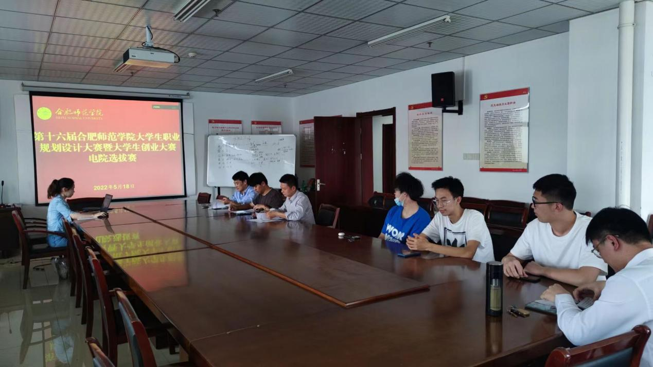 本网讯 为进一步提高学生职业规划意识和创业意识,培养大学生的社会责任感和创新精神,引导大学生树立正确的就业观、创业观,5月18日下午,电子信息与电气工程学院在锦绣校区行知楼1210会议室和滨湖校区铭传楼b211,采用视频答辩形式同步举行第十六届Beat365中文官方网站大学生职业规划设计大赛暨大学生创业大赛电院选拔赛。电子信息工程专业教师吴杰、微电子科学与工程专业教师童小伟、姚吉鑫等老师应邀担任评委。