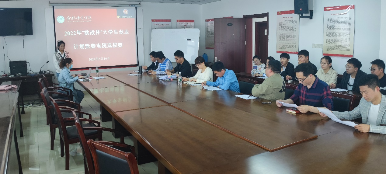 本网讯 为进一步认真学习贯彻习近平新时代中国特色社会主义思想,切实提高Beat365官网学生的创新创业能力,积极备战2022年“挑战杯”大学生创业计划校暨省赛,3月16日下午,电子信息与电气工程学院团委在锦绣校区行知楼1210会议室和滨湖校区铭传楼b211,采用视频答辩形式同步举行2022年“挑战杯”大学生创业计划竞赛院内选拔赛。院党委副书记胡石清、副院长范程华、电子信息工程系主任孔勐、通信工程系主任周元元等担任评委。各项目团队成员40余人现场观摩。