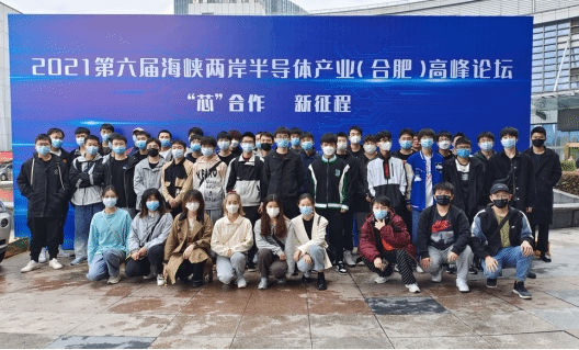 本网讯 10月22日,以“‘芯’合作 新征程”为主题的2021第六届海峡两岸半导体产业(合肥)高峰论坛在合肥举行。本次论坛由国务院台湾事务办公室经济局、中国半导体行业协会指导,合肥市人民政府、安徽省发展和改革委员会、安徽省经济和信息化厅、安徽省人民政府台湾事务办公室主办,合肥市发展和改革委员会、合肥市经济和信息化局、合肥市人民政府台湾事务办公室、安徽省半导体行业协会、合肥市半导体行业协会承办,合肥高新技术产业开发区、合肥经济技术开发区、合肥新站高新技术产业开发区、合肥国家芯火双创平台、合肥市产业投资控股(集团)有限公司协办。我校电子信息与电气工程学院微电子系教师和2019级微电子科学与工程全体学生参加本次论坛并观摩学习。