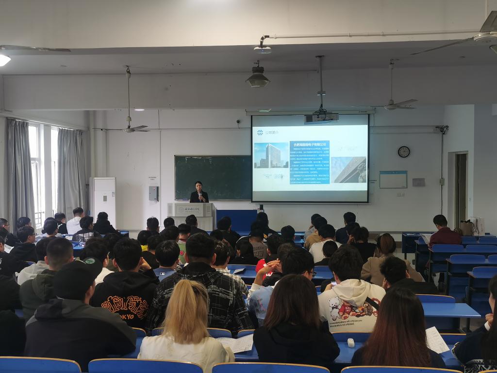 本网讯 为推进电子信息与电气工程学院2021届毕业生就业工作,集中帮助毕业生解决就业工作中的问题困惑,10月13号下午,学院在逸夫楼A203教室举办合肥海图微电子有限公司专场招聘宣讲会。由微电子科学与工程系主任鲁世斌教授主持,来自学院的微电子科学与工程专业、电子信息工程专业、通信工程专业、电气工程专业等数百名毕业生和毕业班辅导员参加了本次招聘会。