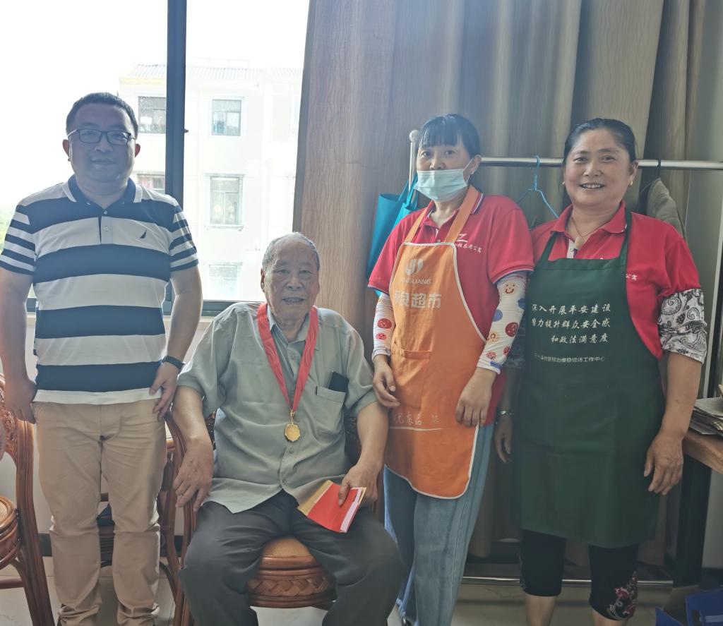 本网讯 在建党100周年之际,6月29日下午,学院党委副书记胡石清,辅导员张静斐、周司文一行三人驱车60公里,走访慰问离退休老党员王毓洵老师,并为他颁发佩戴“光荣在党50年”纪念章,代表学院党政领导班子及全体党员向他致以崇高敬意和诚挚问候。