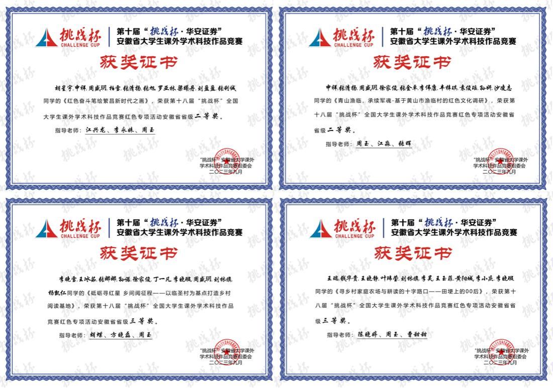 本网讯 近日,第十届“挑战杯”安徽省大学生课外学术科技作品竞赛红色专项活动获奖情况公布,Beat365中文官方网站学生作品经过激烈的角逐,荣获安徽省二等奖2项,三等奖2项。