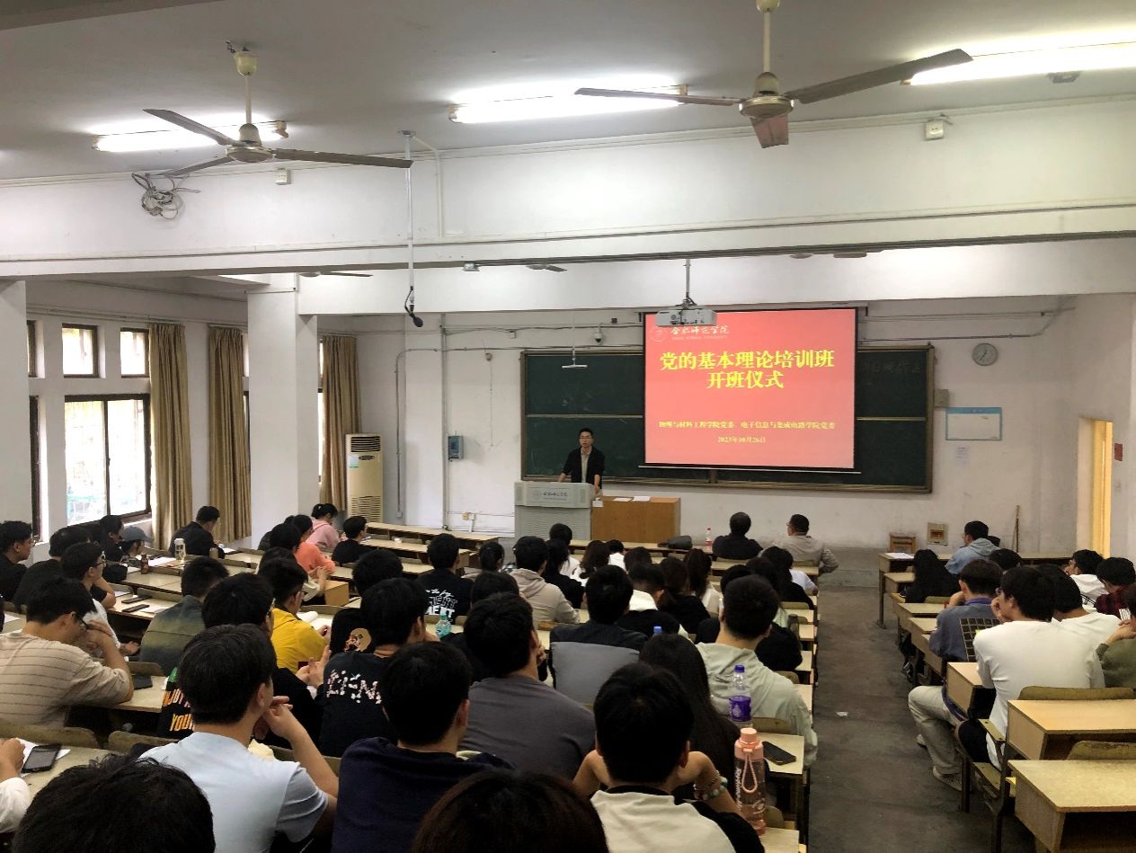 本网讯 为强化党员政治理论学习,增强党员责任担当,提高党员党性修养,增强基层党组织的凝聚力和战斗力。10月26日,Beat365中文官方网站分党校与物理与材料工程学院分党校在锦绣校区联合举办2023年下半年党课培训班,两个学院的发展对象和预备党员参加培训。Beat365中文官方网站党委副书记胡石清、物理与材料学院党委副书记吴震以及辅导员葛宇飞、费文清老师等参与开班式,会议由费文清主持。