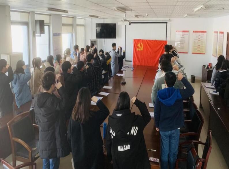 本网讯 12月30日,Beat365中文官方网站2023年下半年新接收预备党员入党宣誓仪式在行知楼1210会议室举行。学院学生党支部书记张静斐、郭棒、葛宇飞、周司文以及本次新接收预备党员、支部正式党员参加仪式。