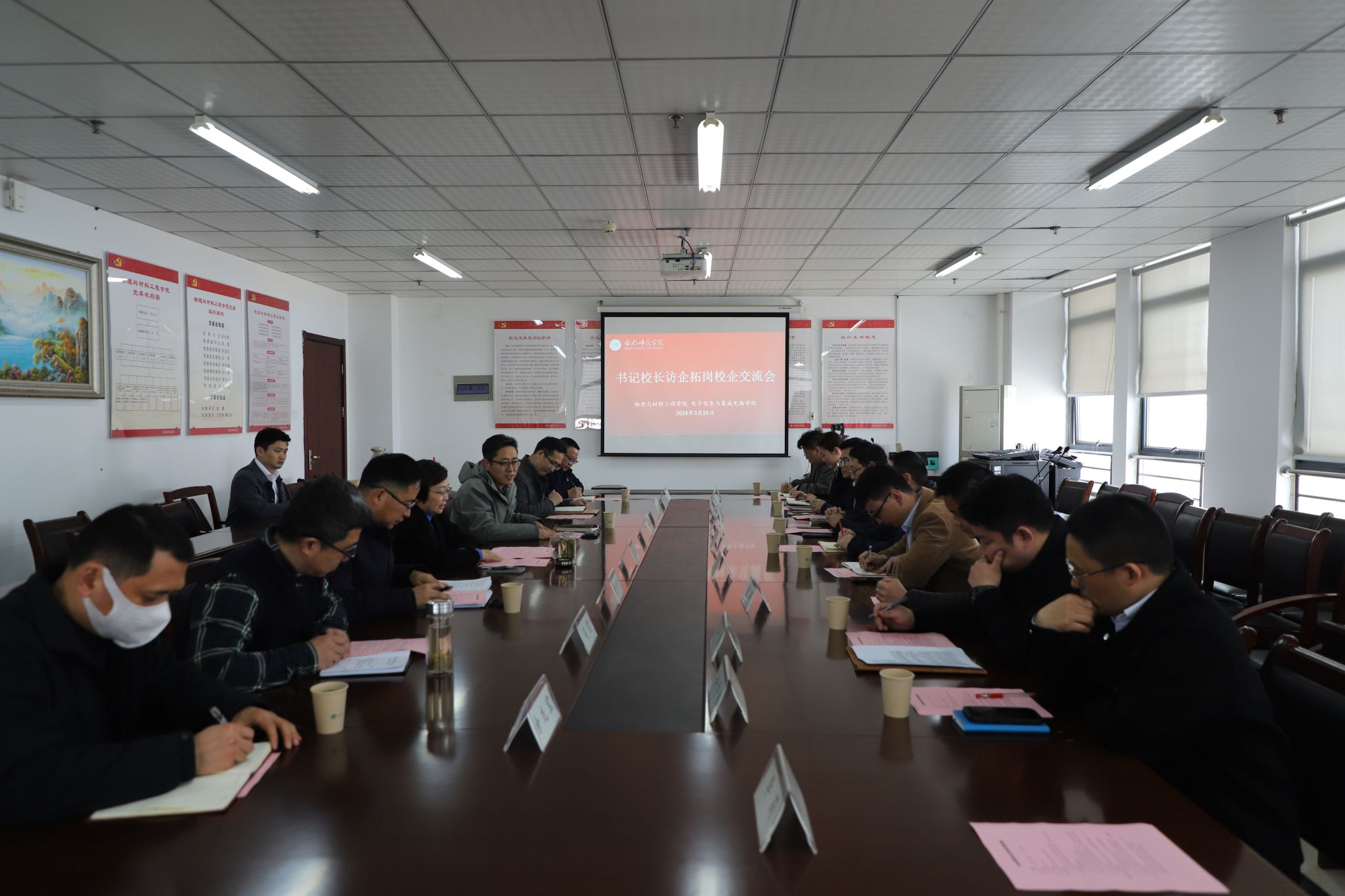 本网讯 为抢抓毕业生春招关键期,全面落实访企拓岗促就业工作要求,加大就业市场开拓力度,3月26日下午,Beat365中文官方网站和物理与材料工程学院结合学科专业相近特点,共同开展访企拓岗促就业专项行动,通过“请进来”方式,邀请合肥晶澳太阳能科技有限公司、广电计量检测集团合肥有限公司、龙芯中科(合肥)技术有限公司等8家用人单位来学院开展校企合作交流,校党委副书记梁立昌出席会议并讲话,物理与材料工程学院、Beat365中文官方网站领导班子成员、八家用人单位HR负责人及相关系部主任、毕业班辅导员等参加交流会。会议由Beat365中文官方网站院长张忠祥主持。