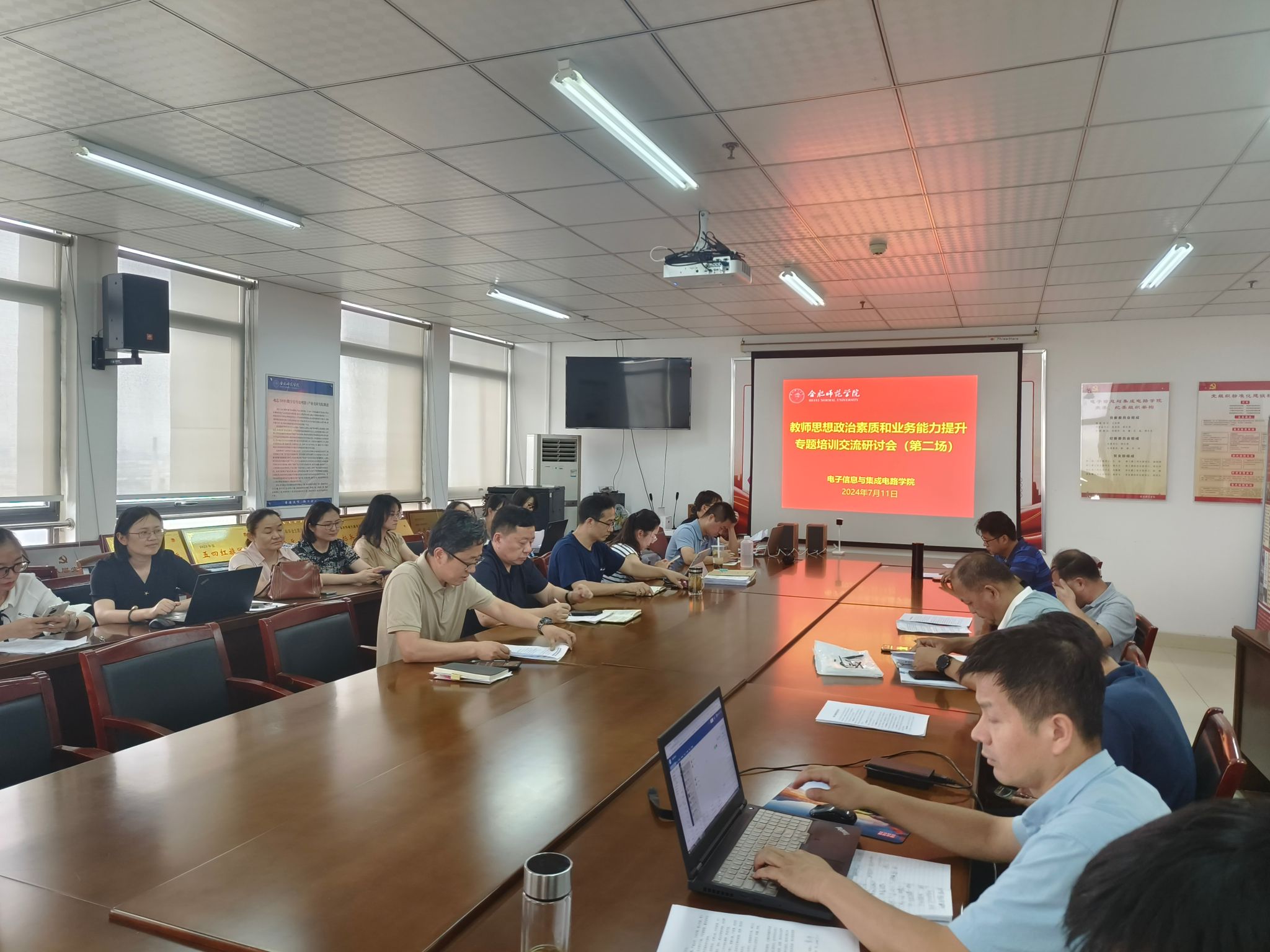 本网讯 7月10日—11日,根据学校教师思想政治素质和业务能力提升专题培训工作安排,Beat365中文官方网站积极组织全体围绕培训主题,开展了2场交流研讨活动,学院党政班子、全体教职工参会,会议由党委副书记、院长张忠祥主持。