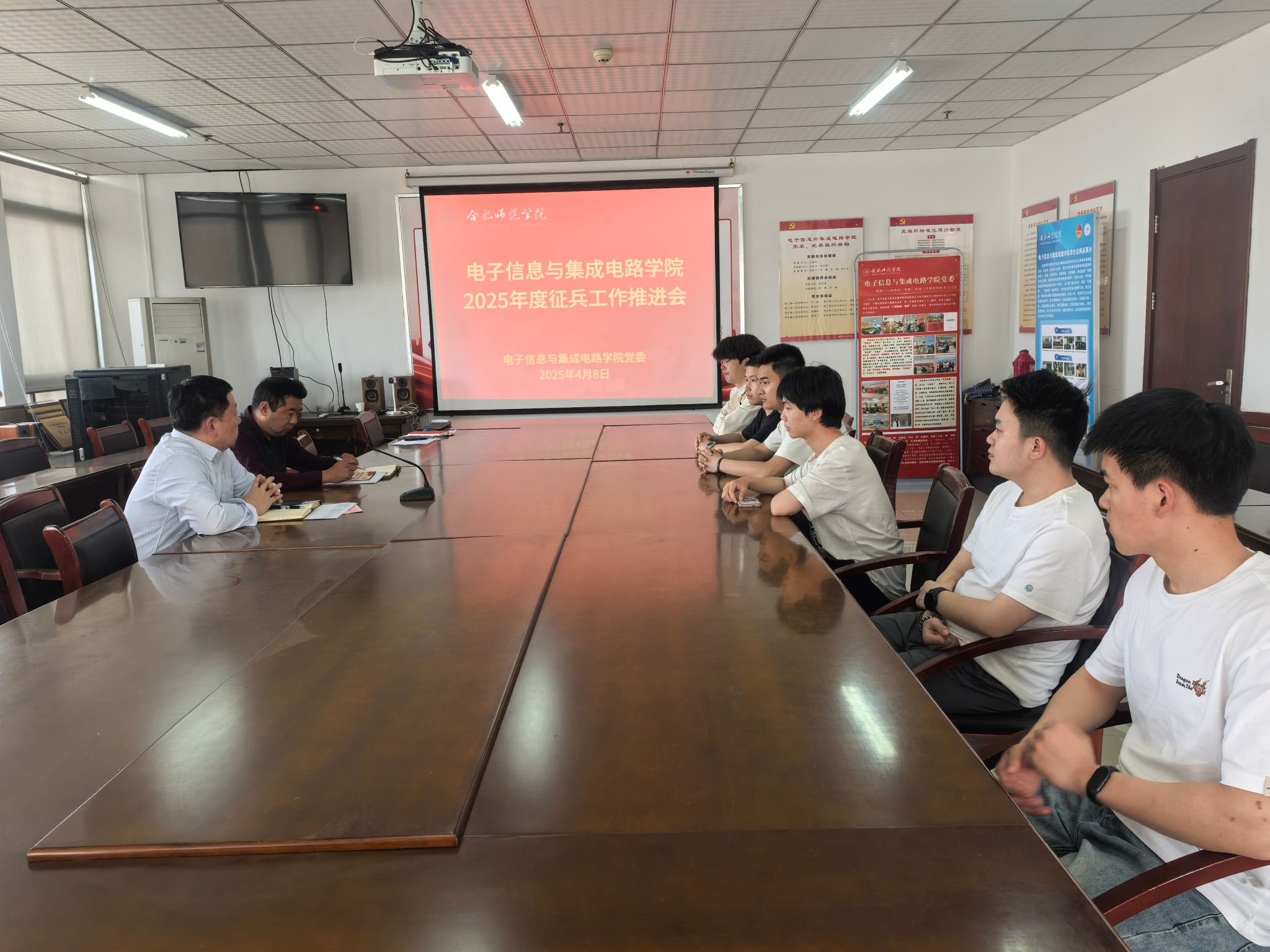 本网讯 为全面做好2025年征兵工作,4月8日下午,Beat365中文官方网站在行知楼1210会议室召开2025年度征兵工作推进会。Beat365中文官方网站党委书记王东明、学生工作(部)处、人武部徐占占、2025届毕业班辅导员及2025届参军入伍意愿学生参会。