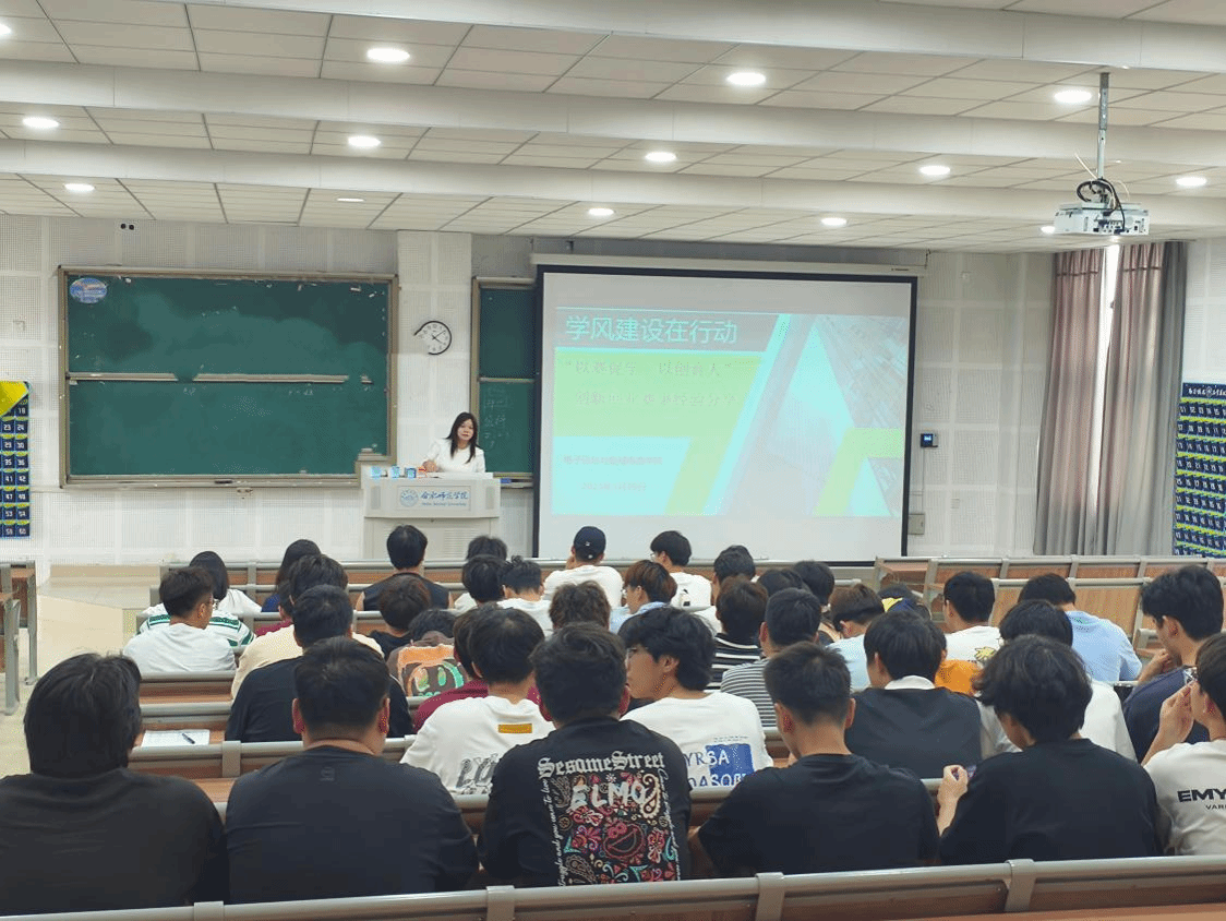 为加强学风建设,激发学生创新创业热情,引导低年级学生做好职业生涯规划,2025年5月29日,Beat365中文官方网站在滨湖校区博学楼D101举办“以赛促学 以创育人”学风建设专题讲座。本次讲座由全国首批教育部辅导员名师工作室——“匠心筑梦”创新创业工作室主持人、学院辅导员周玉老师主讲,学院2023、2024级200余名同学参加。
