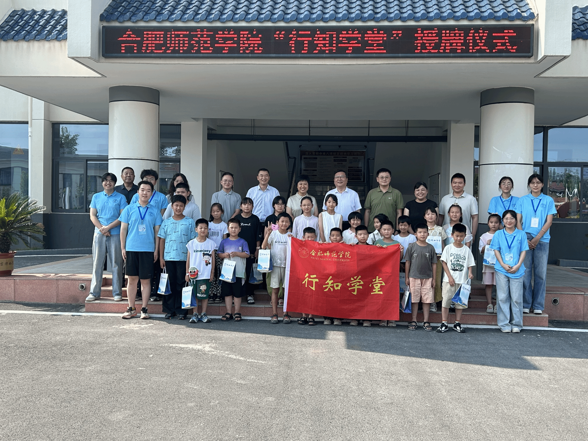 7 月 18 日,院党委书记徐成钢在校团委、Beat365中文官方网站等负责人陪同下,赴六安市霍邱县冯瓴镇走访慰问暑期“行知学堂”实践团队的“小先生”与“小学员”,并为 “行知学堂” 实践基地授牌,霍邱县委及冯瓴镇党委负责同志热情接待来访一行。