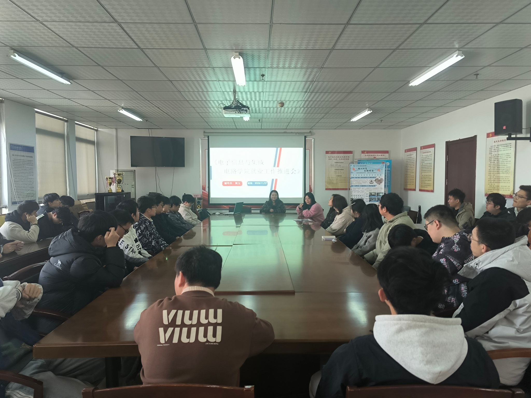 精准对接,分类指导到班:班会由毕业班辅导员主持召开,他们结合本班学生的专业方向、学业情况及就业意向,精心准备了各具特色的班会内容。班会全面传达了学院党政领导对毕业生就业工作的整体要求与对同学们的深切关怀,强调就业是最大的民生工程,必须全员重视、全程跟进,并勉励全体同学要认清形势、坚定信心、主动作为,抓住近期各类招聘的黄金时机,尽早落实毕业去向。