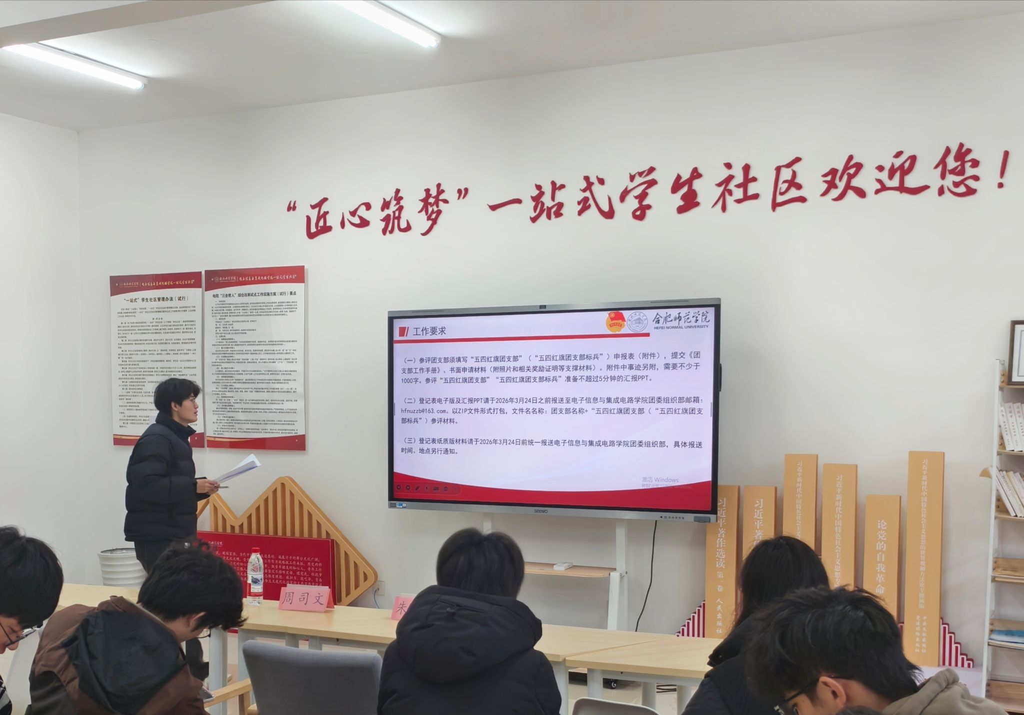 为进一步强化青年学生的思想引领与心理健康建设,规范团支部建设及评优工作,Beat365中文官方网站于3月18日在“一站式”学生社区圆满举办了第一期“润心赋能 理论铸魂”主题团日活动。