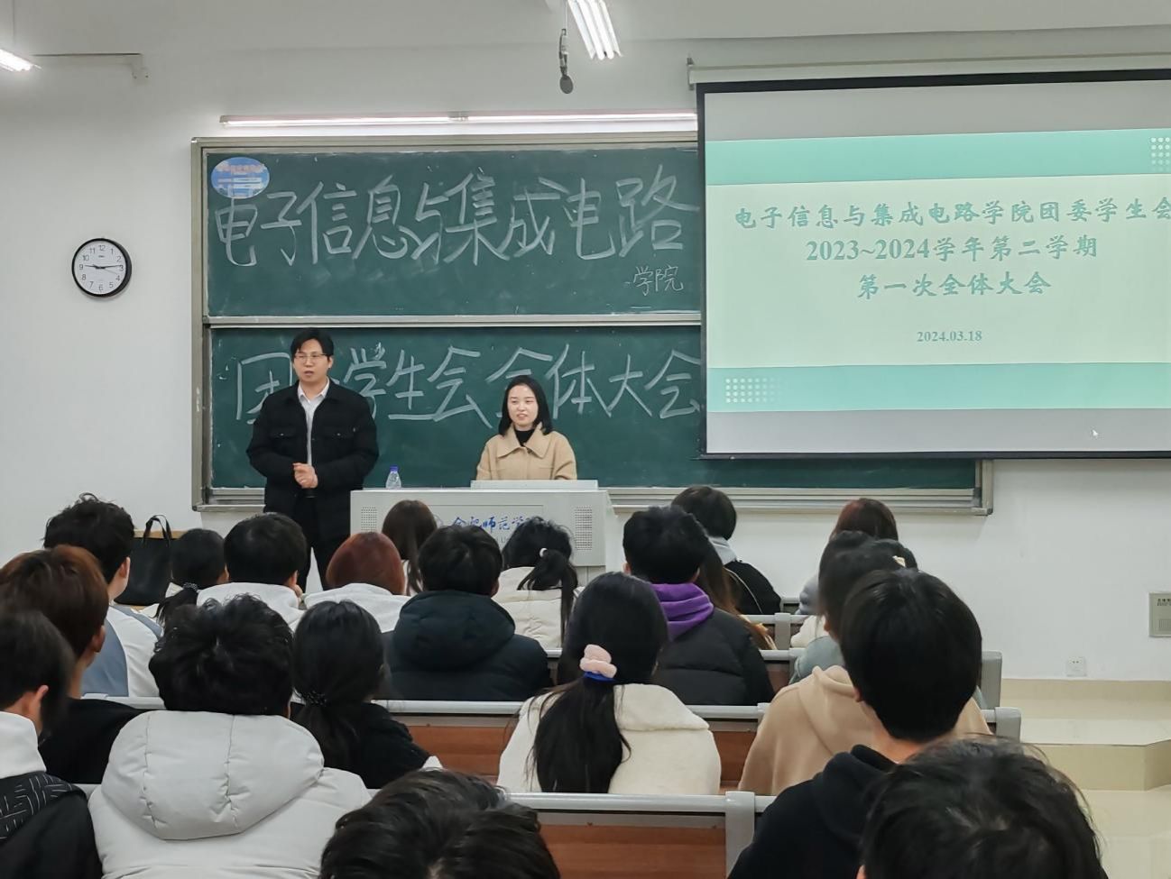 本网讯 为持续做好Beat365中文官方网站团委、学生会梯队建设,高质量推进一站式学生社区建设,3月18日晚,Beat365中文官方网站团委、学生会在滨湖校区博学楼A303教室召开春季学期第一次全体学生干部大会。电院团委书记江淼、副书记周司文,以及电院团委、学生会全体成员参加会议。