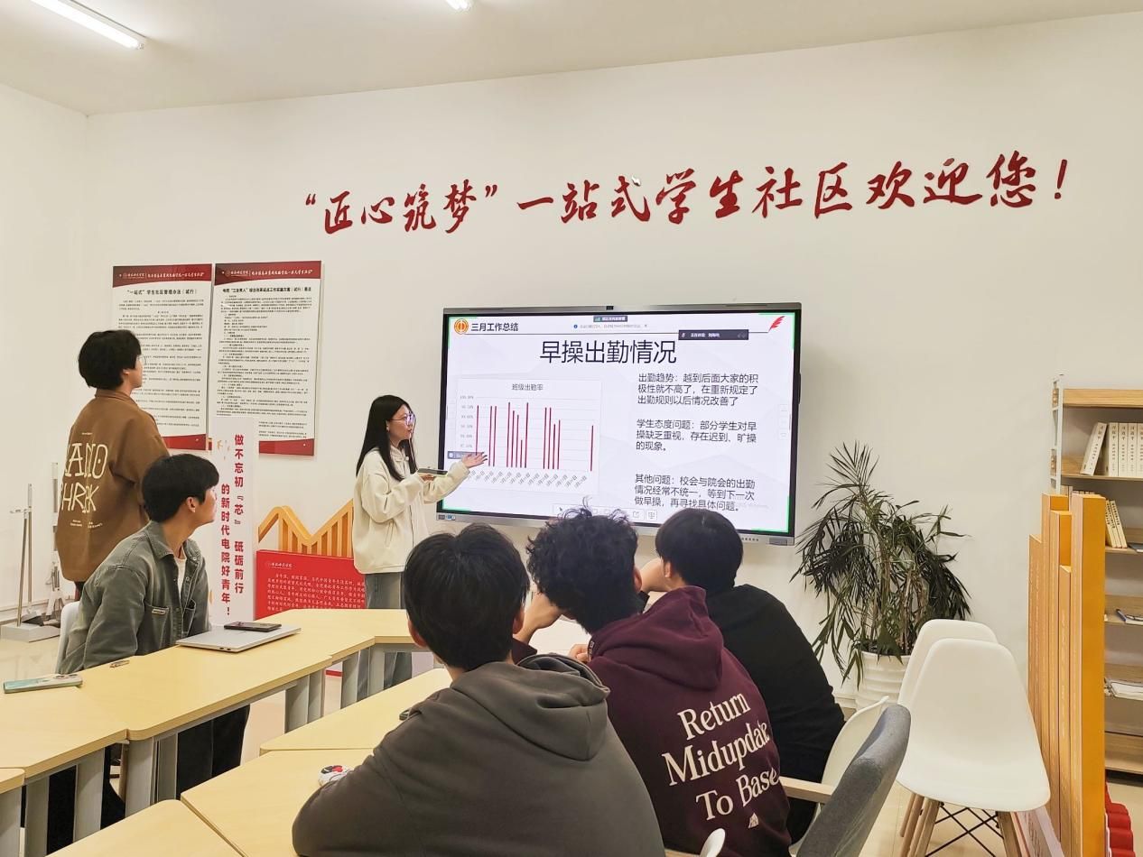 本网讯 为进一步明确学生工作职责,提升学生干部服务意识,增强学生组织凝聚力,推动学院团委、学生会工作新发展,4月7日晚,Beat365中文官方网站团委、学生会在学院“匠心筑梦”一站式学生社区召开2023—2024学年第二学期第一次全体委员会议暨学院团学工作恳谈会。会议由学院团委书记江淼主持。