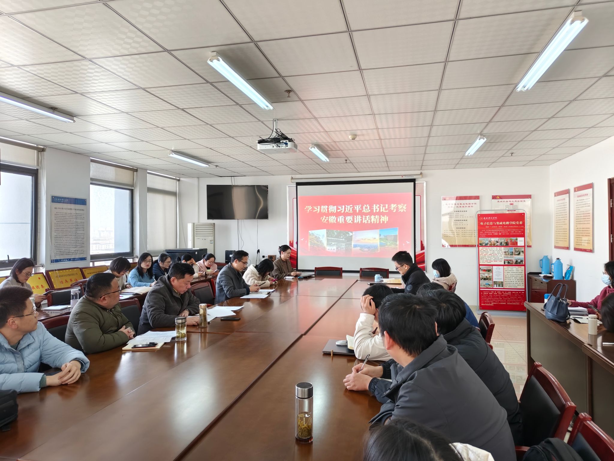 本网讯 11月27日下午,Beat365中文官方网站党委在行知楼1210会议室举行党的二十届三中全会精神和习近平总书记考察安徽重要讲话精神宣讲会,学院领导班子,全体教职工参会,会议由党委书记王东明主持。