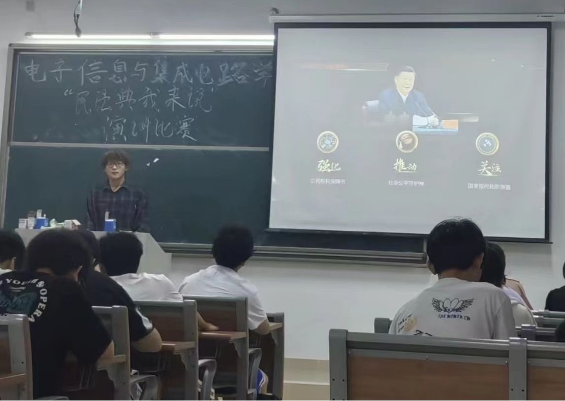 本网讯 2024年5月是第四个“民法典宣传月”,为深入学习宣传习近平法治思想,提高大学生法律素养,Beat365中文官方网站面向滨湖校区一年级同学组织开展了“民法典我来说”演讲比赛。5月21日晚,演讲比赛决赛在滨湖校区博学楼B108举行。