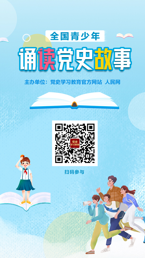 微信搜索或扫码关注“党史学习教育”微信公众号,进入“全国青少年诵读党史故事”小程序即可参与活动。