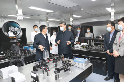 清华大学主楼二层,展示了学校近年来重点教学科研成果。习近平听取了关于增强自主创新能力、助力世界主要科学中心和创新高地建设、提高人文社会学科教育研究水平等情况介绍,对清华大学取得的成绩给予充分肯定。习近平指出,要坚持中国特色社会主义教育发展道路,充分发挥科研优势,增强学科设置的针对性,加强基础研究,加大自主创新力度,并从我国改革发展实践中提出新观点、构建新理论,努力构建中国特色、中国风格、中国气派的学科体系、学术体系、话语体系。