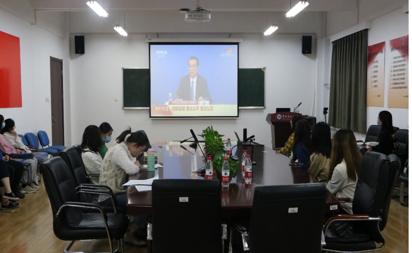 首先,党支部书记刘彩霞带领大家学习李克强总理代表国务院向十三届全国人大三次会议作政府工作报告。她指出,报告回顾了人民满意、世界瞩目、可以载入史册的2020年,也在“十四五”开局之际擘画了2021年政府工作的蓝图这既是总结回顾、盘点成绩的战报,更是直面挑战、再出发的动员并呼吁同学们要两会精神武装思想、鼓舞干劲,以永不懈怠的精神状态和风雨无阻的奋斗姿态,以实际行动为全面建设社会主义现代化国家注入蓬勃青春力量