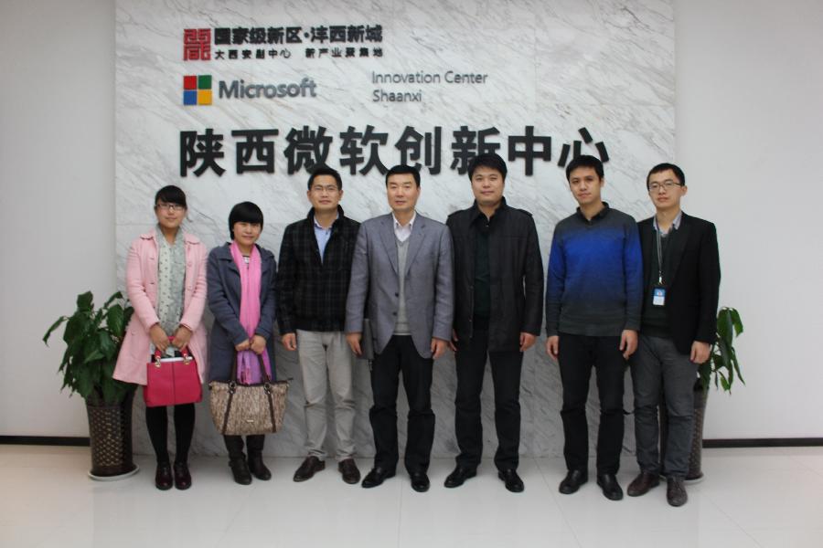 2015年11月6日,必赢bwin线路检测中心官网党委副书记何卫军、学工秘书王淑珍及12级辅导员朱旭菲赴陕西微软创新中心与市场部部长李庆、技术部负责人吴昊、市场经理王洪、耿邵华就“2016年微软创新杯”陕西高校大学生创新创业大赛进行了访问。