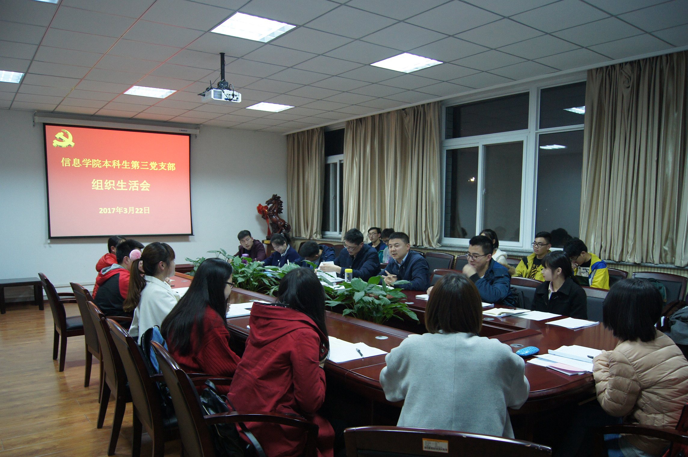 2017年3月22日晚七点,本科生第三党支部在学院216会议室召开专题组织生活会。会议由支部书记程玉锋老师主持,党委书记党青出席会议并讲话。