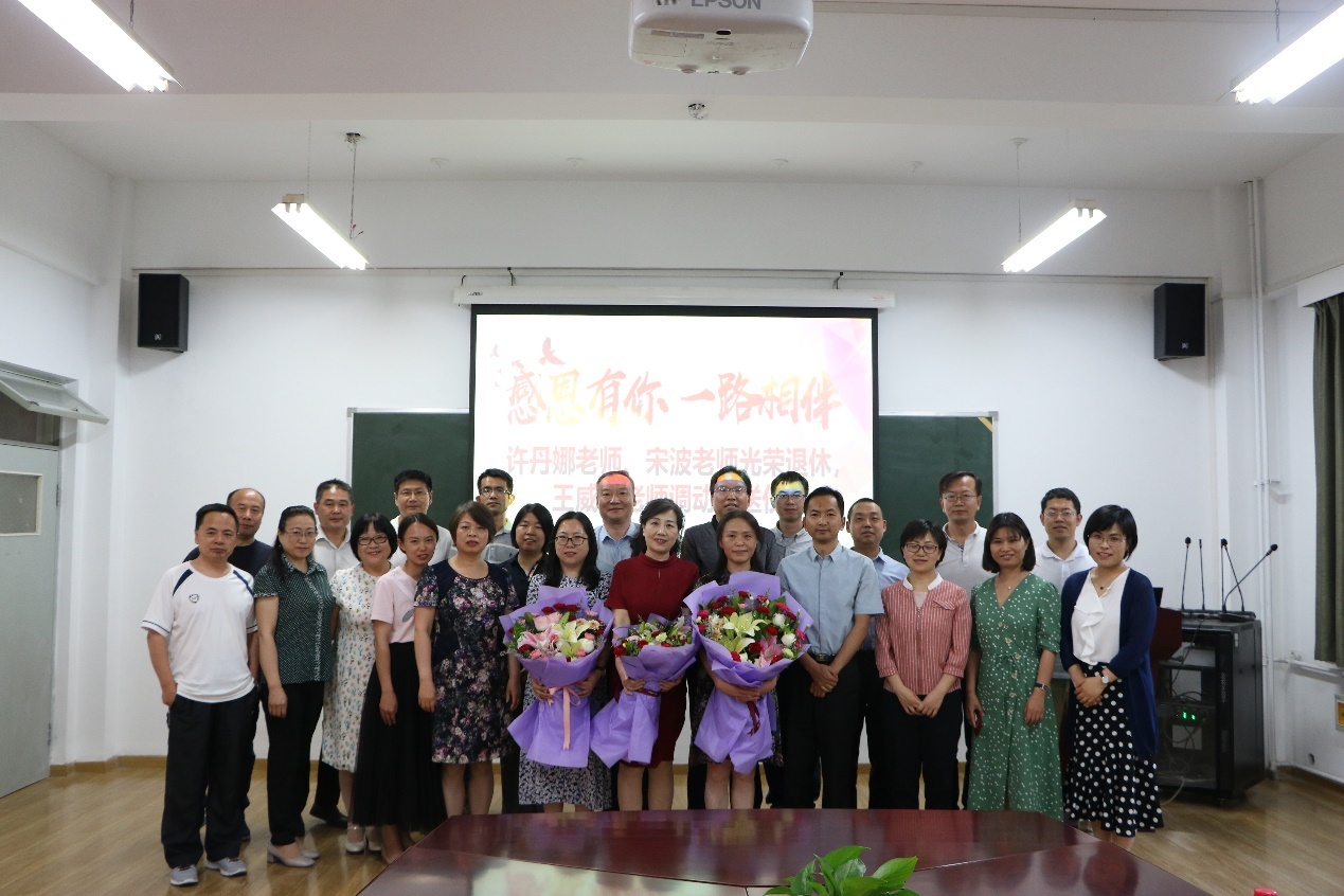 5月21日下午,beat365官方网站会议室温情涌动。学院在此举行许丹娜老师、宋波老师光荣退休,王威威老师调动的欢送仪式,校党委副书记、纪委书记何华出席,学院全体教师参加仪式。仪式由党总支书记蔡利民主持。