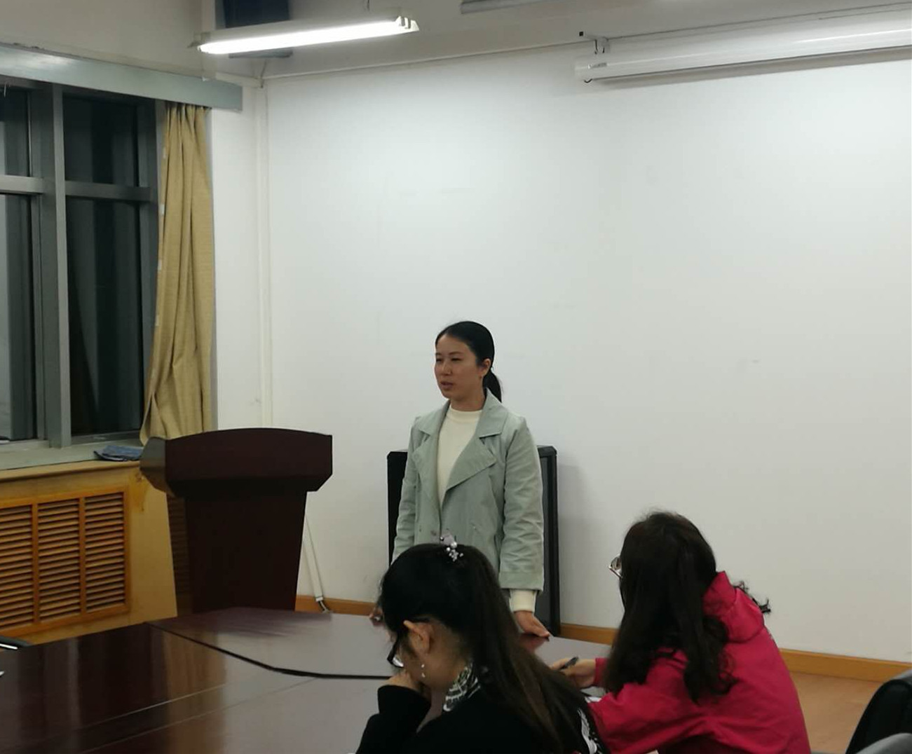 首先由发展对象候选人对自身表现情况进行简单汇报,其中千金因在台湾交流,委托曾秋红代为陈述。
