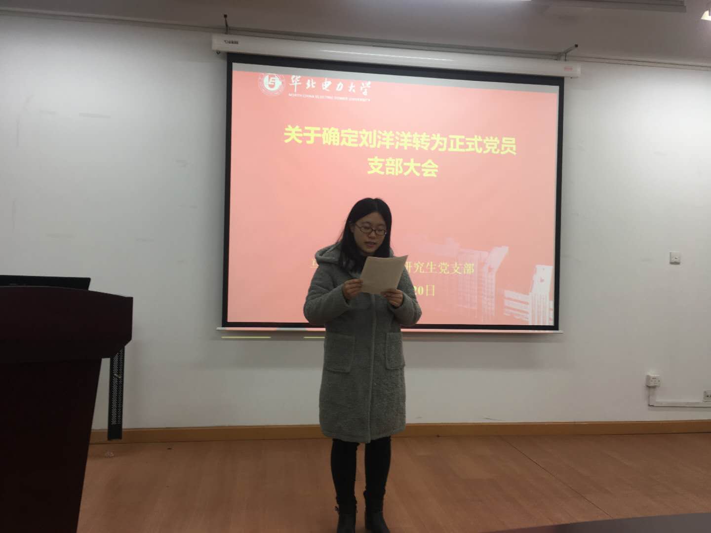 马院研究生党支部召开关于确定刘洋洋为正式党员支部大会
