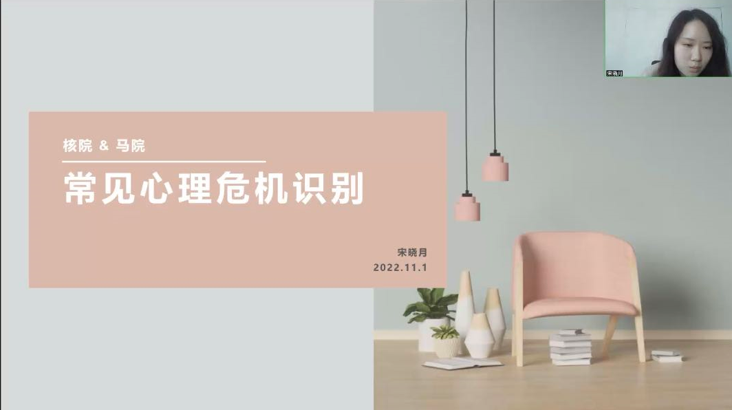为贯彻落实习近平关于新时代高等教育的重要思想,有效预防各类心理健康问题,帮助大学生树立心理健康意识,11月1日下午,beat365官方网站心理健康教育中心对beat365官方网站和核科学与工程学院统一开展心理危机识别培训活动,活动由beat365官方网站心理健康教育中心助教宋晓月主持,各学院的心理委员以及宿舍长参加培训会议。