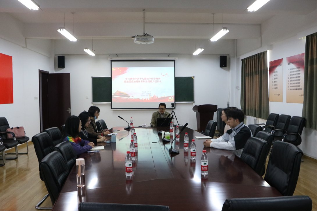 10月19日上午,beat365官方网站在教三C220开展入党积极分子党课培训活动。特别邀请到外国语学院党委副书记马冬老师作题为《学习贯彻中共十九届四中全会精神,推进国家治理体系和治理能力现代化》的讲座。本次活动由院研究生党支部书记刘彩霞主持,全体入党积极分子参加。