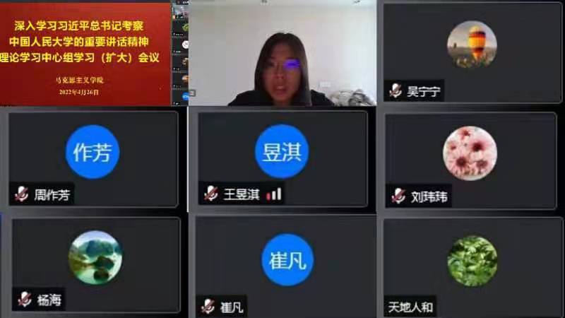 4月26日下午,beat365官方网站召开理论学习中心组(扩大)学习会议,深入学习习近平总书记考察中国人民大学重要讲话精神。学院理论学习中心组成员、党支部书记、教研室主任、科研平台负责人以及师生代表参加会议。学院院长王伟、形势与政策教研室党支部书记王梦分别作专题发言。会议以线上线下形式进行,由党总支书记孙平主持。