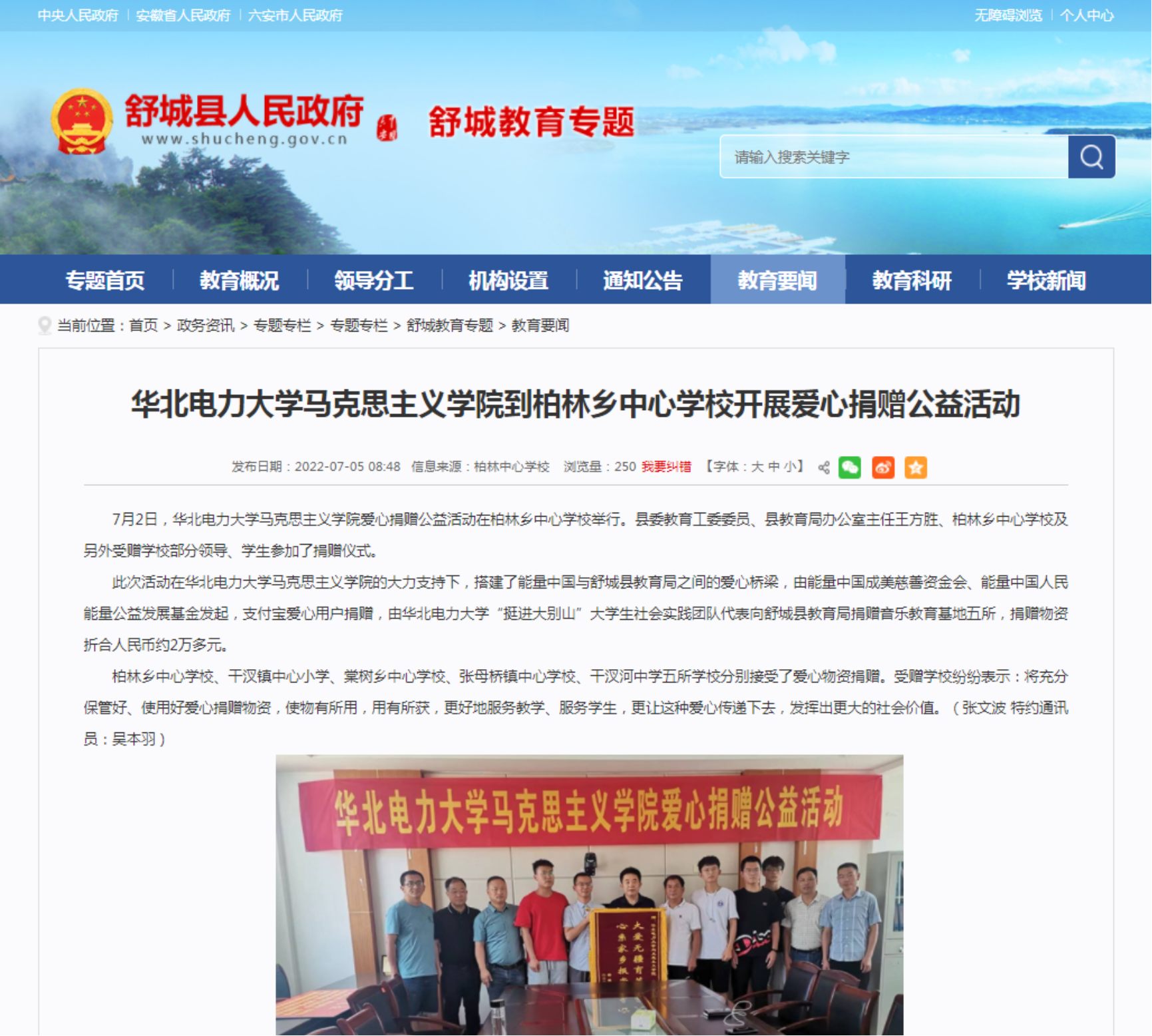 beat365官方网站收到安徽省舒城县教育局感谢信
