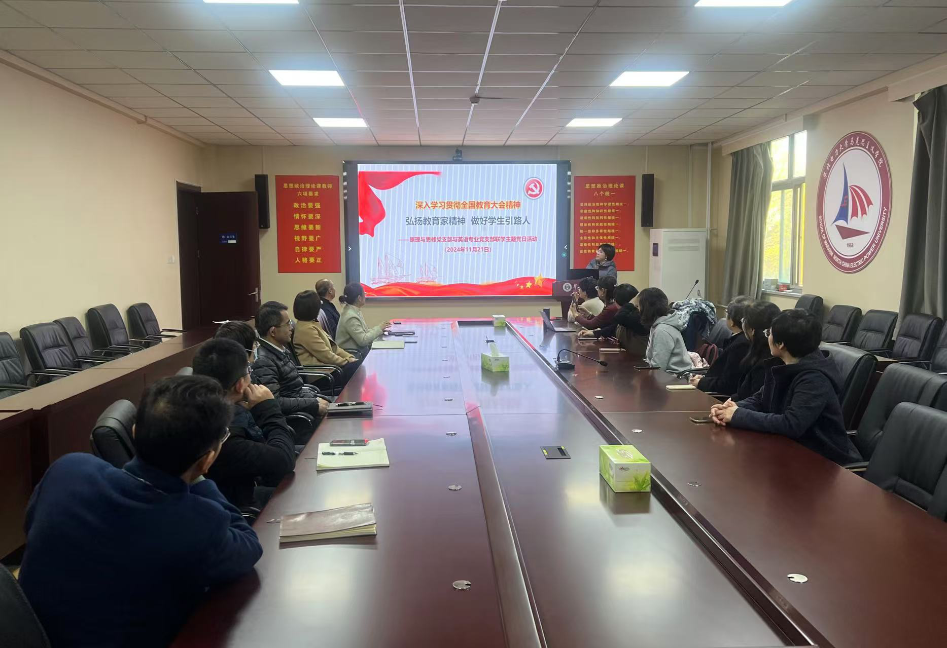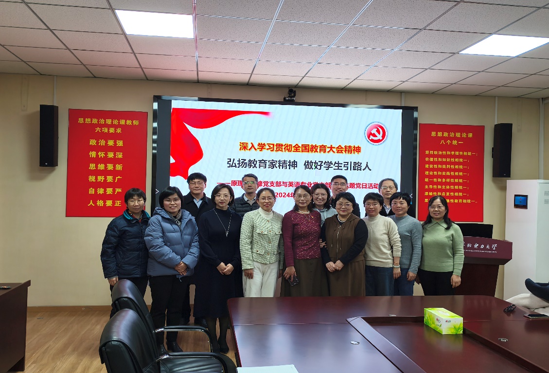 为深入学习贯彻习近平总书记重要讲话和全国教育大会精神,进一步凝聚思想共识、强化使命担当,推动党中央关于建设教育强国的重大决策部署落实落地,2024年11月21日,beat365官方网站原理与思修党支部与外国语学院英语专业党支部开展联学共建,进行“弘扬教育家精神 做好学生引路人”主题党日活动,本次活动由原理与思修党支部书记吴宁宁主持,外国语学院英语专业党支部书记郑蓉颖进行总结。