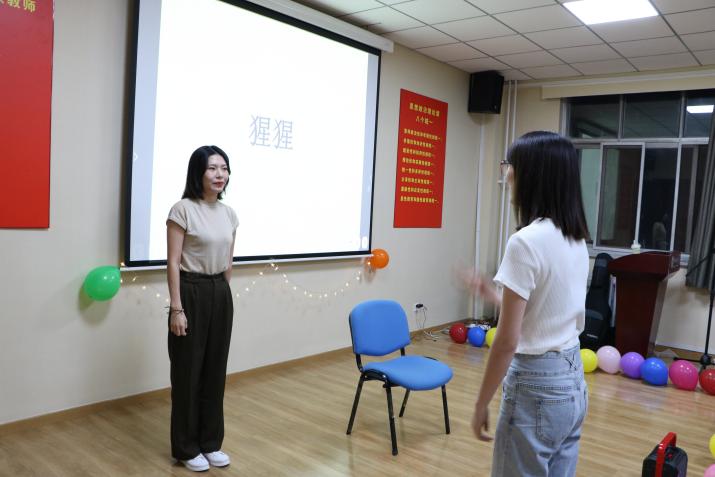接下来是游戏环节:萝卜蹲,由四名同学和盖立涛老师参加,拉近了师生距离的同时又活跃了现场的气氛。