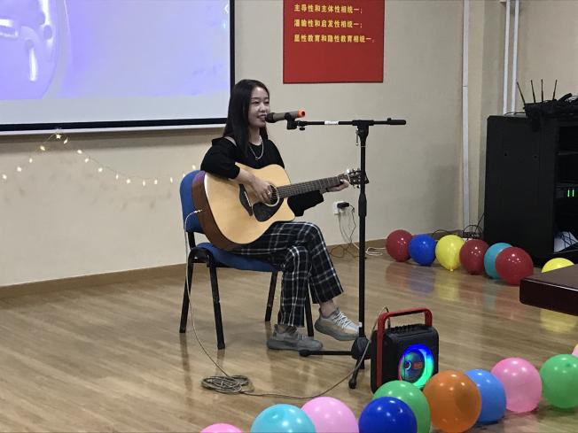 接下来,华电迷音吉他社的闫佳乐为大家带来的吉他指弹《Harmonics got crazy》、《 waitting for you》、张艺可同学带来的吉他弹唱《走马》,让我们深深的感受到了音乐的魅力,匆匆的时光,带走的是时间,带不走的是那颗充满青春的内心和一份淡然的心情,沉浸在音乐的世界里,思绪在细细的琴弦下飘出,穿越了时空,穿越了自己。