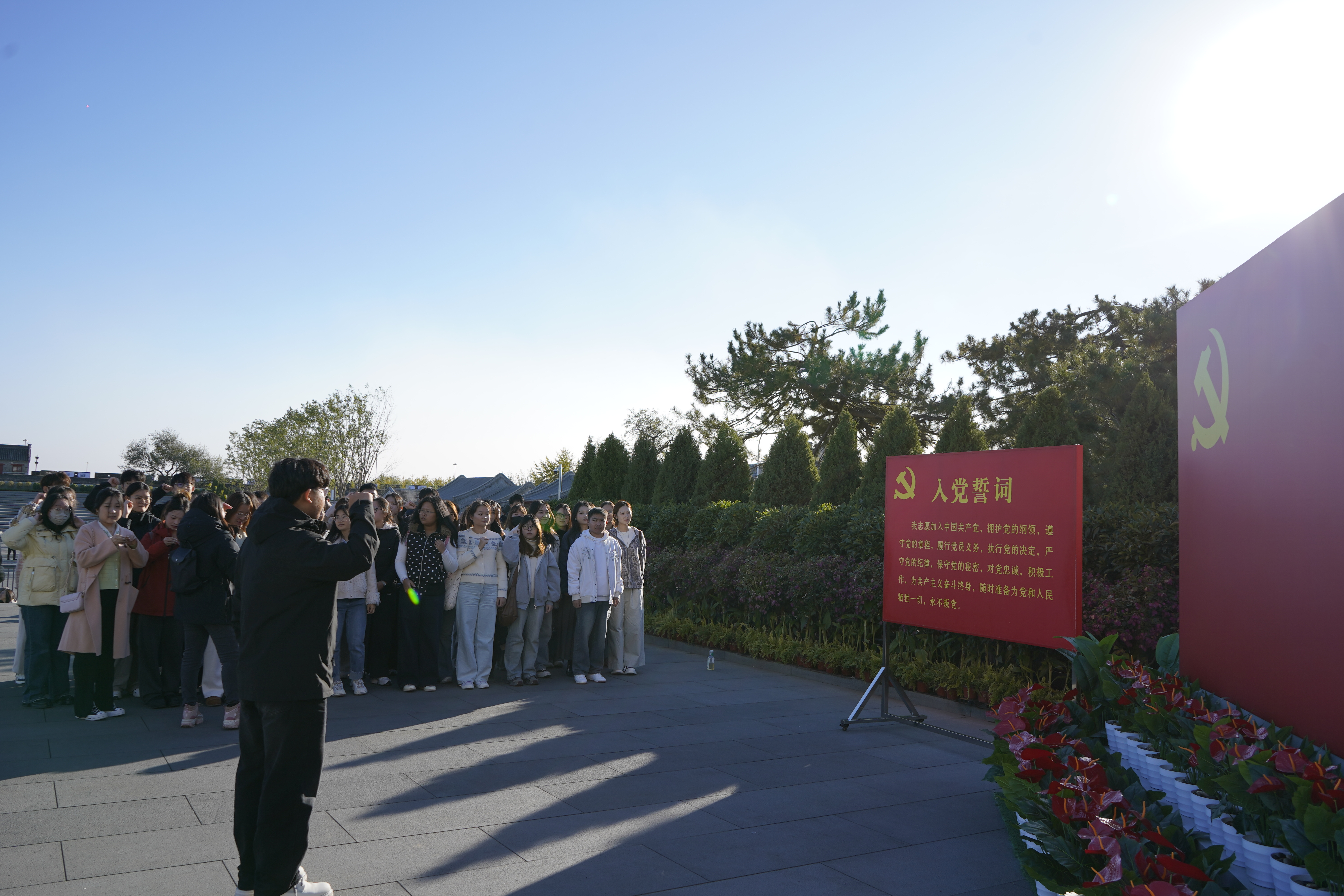 参观结束后,全体党员在鲜艳的党旗下,由党支部书记乔宝寅同志领誓,重温入党誓词。铿锵有力的誓言回荡在耳畔,表达了党员们不忘历史、牢记初心、砥砺前行,为共产主义事业奋斗终身的坚定决心,更彰显了青年党员在感悟新时代发展实践中筑牢理想信念的坚定姿态。