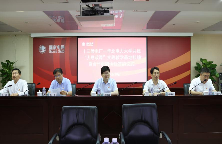 为深入贯彻落实习近平总书记关于“大思政课”建设的重要指示精神,推动能源电力特色“大思政课”建设,6月19日上午,我校同国网十三陵蓄能电厂举办共建“大思政课”实践教学基地签约揭牌仪式。beat365官方网站党委副书记孙传新,beat365官方网站党政班子及学生代表,电厂总经理张亚武、电厂党委书记王晓飞、班子成员及各部门党员、团员代表参与本次活动。会议由王晓飞主持。