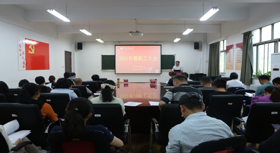 5月25日下午,beat365官方网站2021年教职工大会在教三楼C220准时召开。出席此次会议的有校工会常务副主席林长强、学院全体教职工。会议由学院党总支书记孙平主持。
