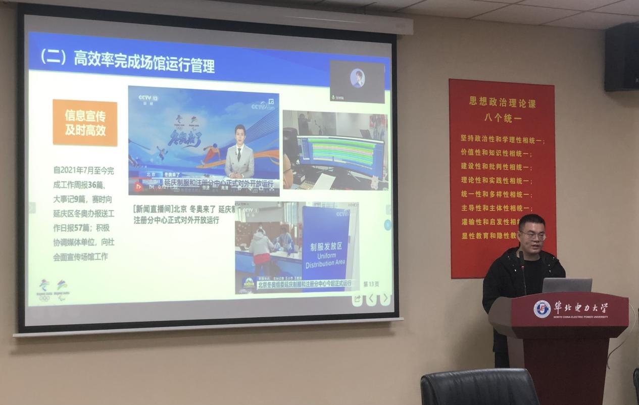 之后,李超学长通过视频和图片,为大家生动地介绍了他“冬奥场馆业务领域志愿者”经历,李超指出,冬奥、冬残奥盛会,让冰雪运动的激情迸发在中国大地之上,让奥林匹克的拼搏精神在国人心中久久激荡,在作为冬奥会场馆志愿者的过程之中,他参与的是关于党建和场馆运营管理的工作,每项工作对于冬奥会都至关重要,每一次的任务都必须无差错地完成,正是在数千名像他一样秉持“奉献、友爱、互助、进步”的志愿服务精神的志愿者的保驾护航之下,我们才能在新冠肺炎全球大流行的艰难情况下创造这场精彩的冬奥盛会。