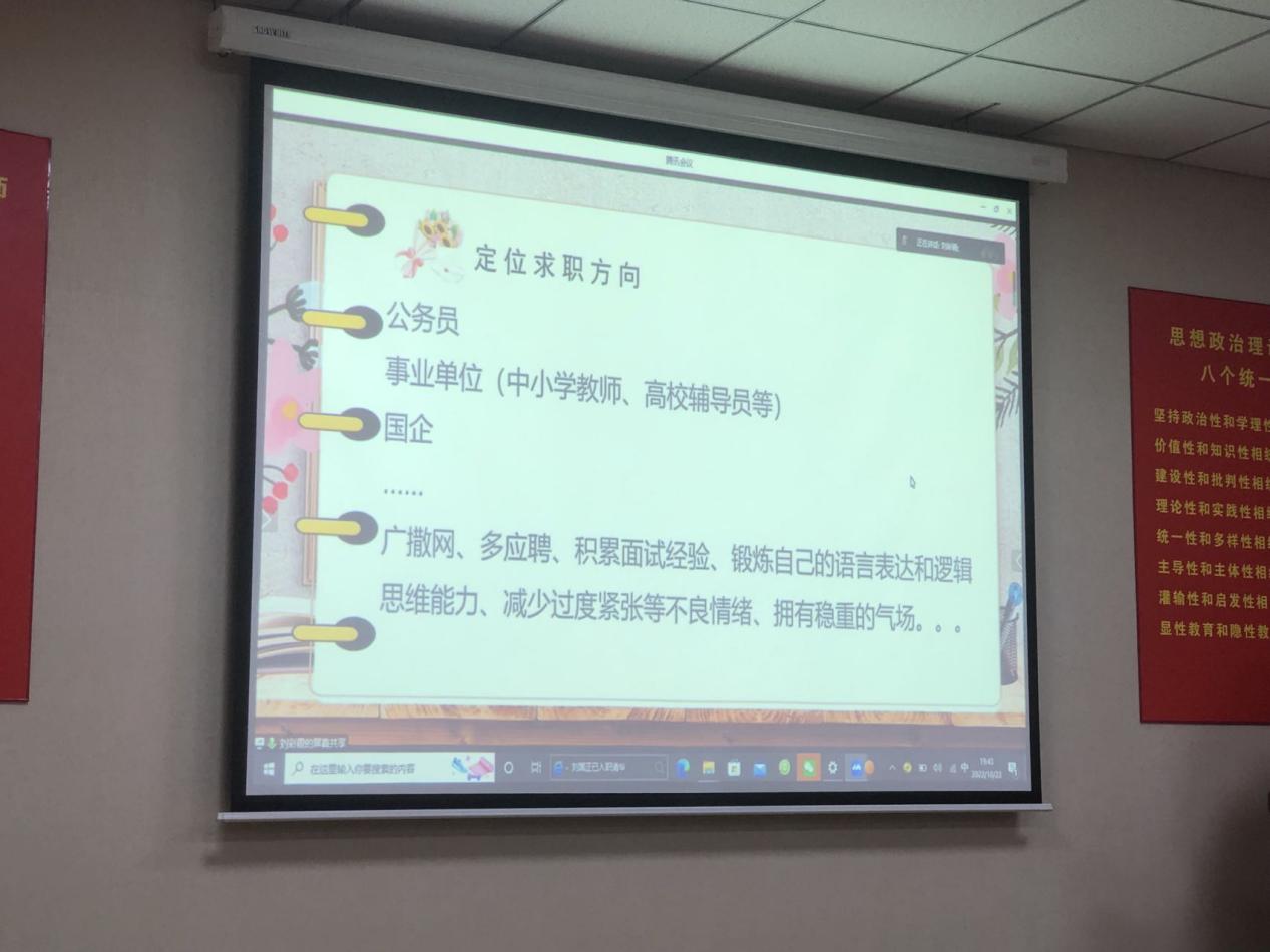 最后刘彩霞学姐为大家介绍了关于求职的相关经验,刘彩霞强调,同学们应当提早对求职方向进行定位,beat365官方网站的学生,大致就业方向是相对明确的。无论是从事公务员、教师工作,还是就职于国企都是适合本专业特点的就业方向。根据刘彩霞的求职经验,在选择应聘教师岗位之前,要对各个学校的招聘情况进行分析,广撒网、多应聘,研究生期间,要主动地抓住每次实习的机会,找到自己适合并喜欢的工作,为日后的求职、就业积累经验、打下基础。