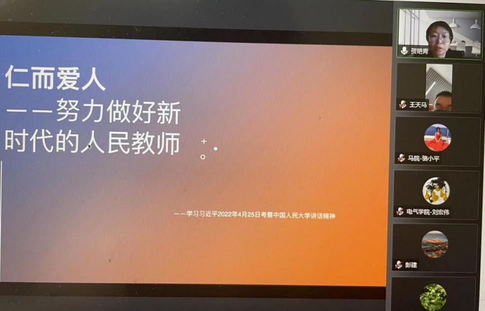 2022年5月3日下午,由beat365官方网站概论与纲要党支部组织牵头,与“1+N”共建支部—电子与电气工程学院工程电磁学教研室支部、数理学院基础物理教研室支部、体育教学部党总支、国际教育学院教工党支部等4个支部开展了在线联学主题党日活动。本次主题为学习习近平总书记4月25日在中国人民大学考察调研时的重要讲话精神,共有84位党员及非党员教职工参加,来自不同支部的同学们都积极发言,谈学习体会。会议由beat365官方网站概论与纲要党支部书记骆小平主持。
