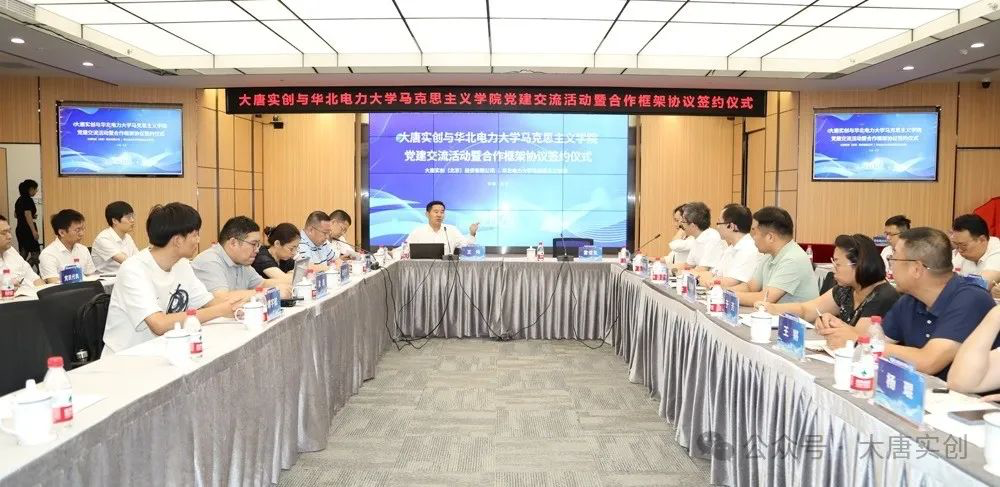 9月4日,我院与大唐实创(北京)投资有限公司(以下简称“大唐实创”)开展党建交流活动,并在校企共建“大思政课”实践教学基地方面达成合作协议。大唐实创党总支书记、董事长、总经理雷信生,党总支委员、党群与司务办公室主任耿丽萍及公司党员干部代表,学院院长王伟,党总支副书记武昌杰,党总支纪检委员宁阳等一行出席本次党建交流暨签约揭牌仪式。