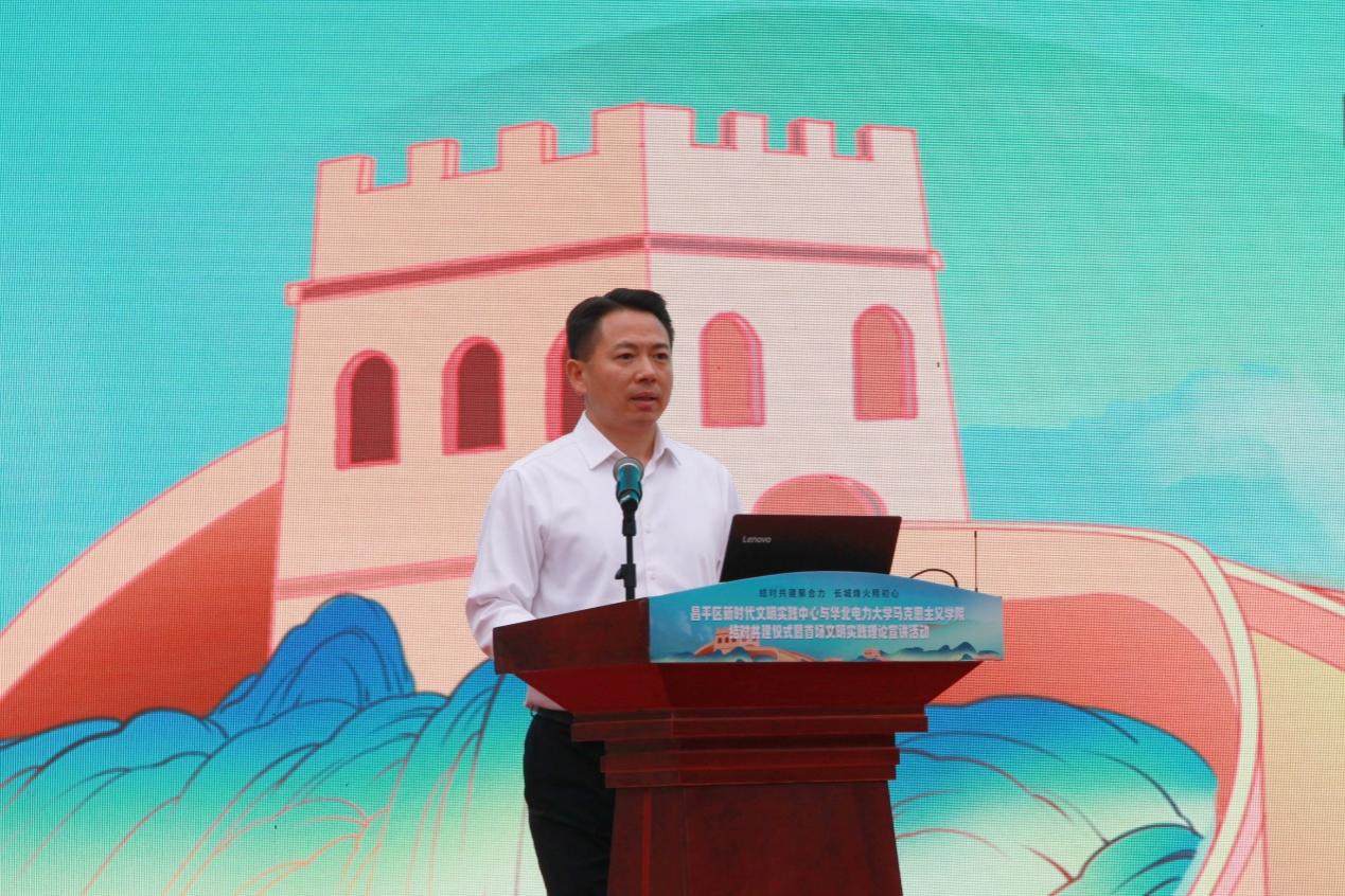 9月23日,学校beat365官方网站与昌平区新时代文明实践中心结对共建仪式暨首场文明实践理论宣讲活动在居庸关长城成功举办。北京市委宣传部领导,昌平区委常委、宣传部部长陈祥,beat365官方网站党委副书记、纪委副书记何华,昌平区各镇街相关负责同志以及学校beat365官方网站师生代表200余人参加了活动。活动由马院学生代表刘婉琳主持。