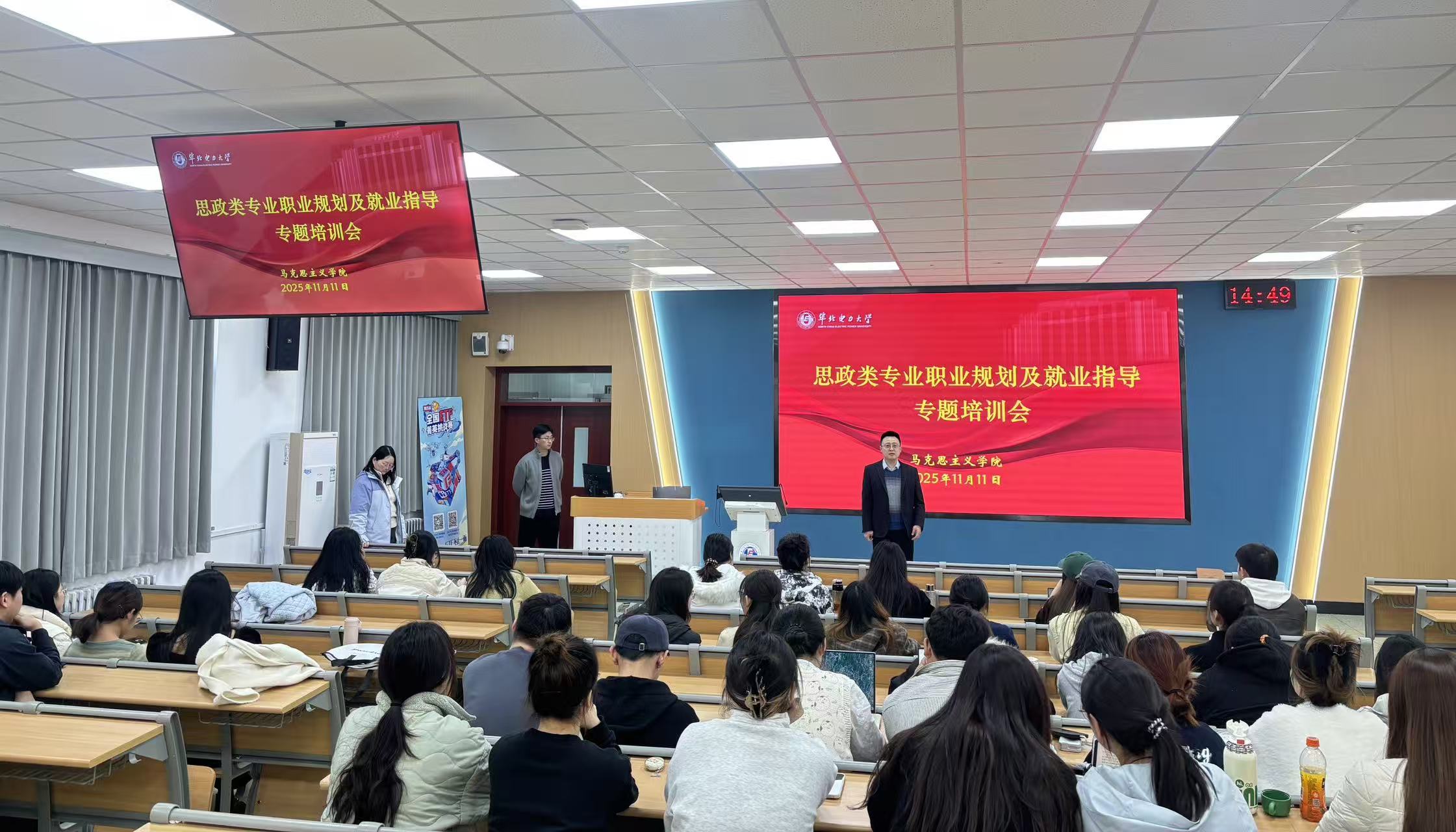 为积极应对当前就业市场新形势、新挑战,切实提升学生的就业竞争力与职业发展能力,迎接第三届全国大学生职业规划大赛,11月11日,beat365官方网站举办思政类专业职业规划及就业指导专题培训会,特别邀请学校就业指导中心王禹周老师和王蓉老师做专题报告。学院全体学生参加了本次活动,活动由学院党委副书记侯步蟾主持。