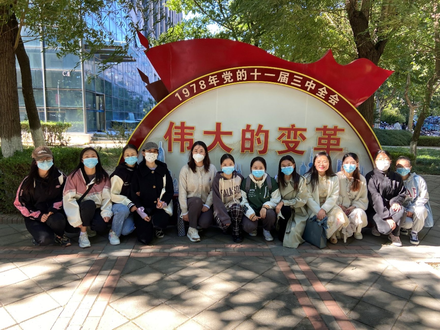 下一个参观打卡地点是“开国大典”党史事件微景观,位于教一楼北侧。1949年10月1日,毛泽东主席在天安门城楼上庄严宣告:“中华人民共和国中央人民政府今天成立了!”从此,中国结束了一百多年来被侵略被奴役的屈辱历史,真正成为了独立自主的国家,中国人民从此站起来了!