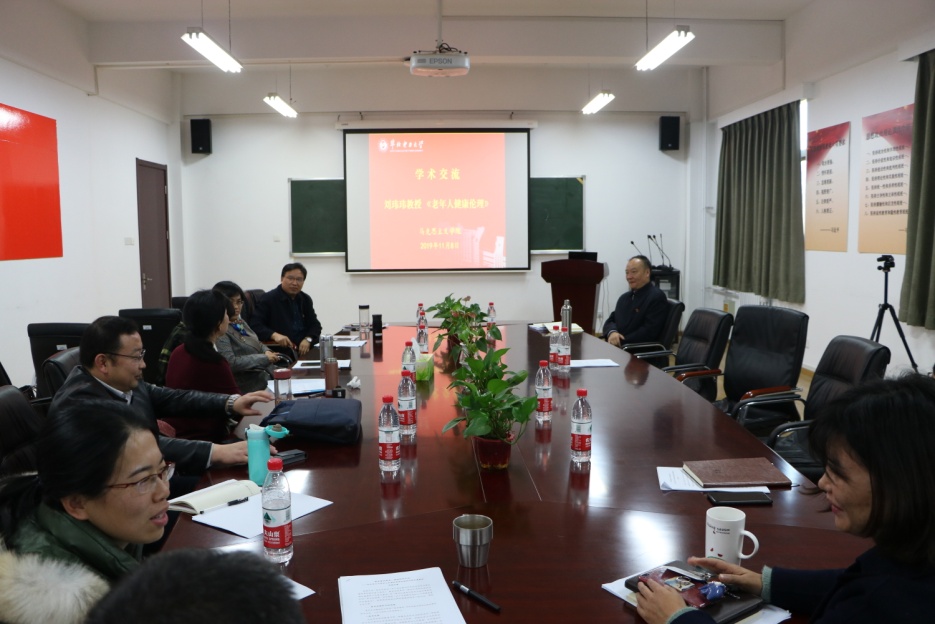 2019年11月8日上午,beat365官方网站在会议室举办了学术交流会,主讲人beat365官方网站刘玮玮教授以《老年人健康伦理》为主题进行阐述并与大家进行交流,与会人员为beat365官方网站的全体教师。