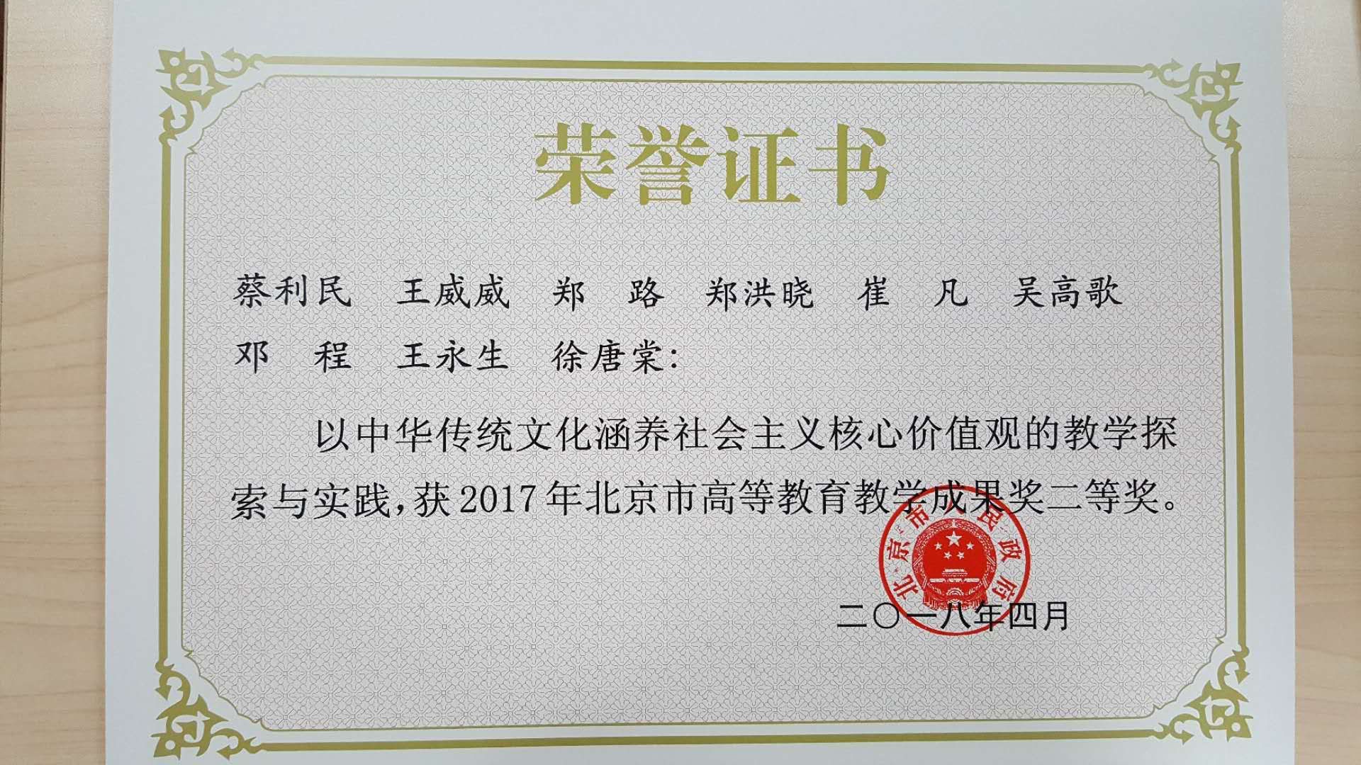 北京市高等教育教学成果奖二等奖第578号